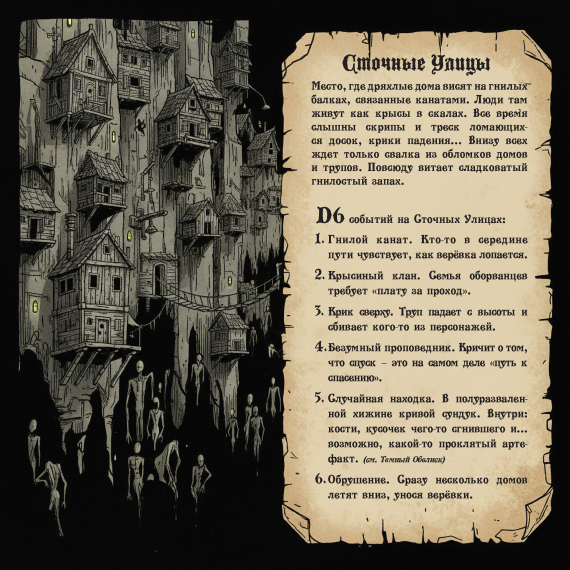 Ну, вот вам мое коротенькое приклчюение «Невинно Осужденные» (скачать pdf), точнее его скелет, не люблю ограничиваться по этому просто собираю подсказки и работаю с ними. А мнение Оэлун, которая побыла у меня игроком, можно прочитать в ее телеге (t.me/oelun_stories).