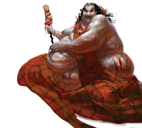 Йогурт: Тут модуль не очень полезен, на самом деле. По идее это полу-огр (ogrekin), а не огр, как я его ошибочно описал, вместо того, чтобы отвечать, лаяит как собака, и что-то полезное скажет только если “повысить его отношение до дружественного”. Но игроки хорошо отыгрывали, как они его обманут, некромант клево кинул Блеф, а этот товарищ, мягко говоря, не самый умный в мире поц, так что я решил, что несмотря на мои попытки водить как можно ближе к книжке, это вполне резонно.