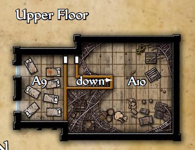 Оставив Шалелу вместе с пленниками, мы пошли к домику напротив амбара. Первая открытая дверь (А4) вела на кухню, в который был такой отвратительный смрад, что партии пришлось на несколько минут уйти на на свежий воздух, отдышаться (Почему на нас никто в этот момент не напал? Странный дизайн).