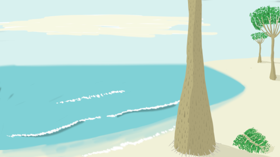 Столкнувшись с этим обстоятельством, команда решила отправиться к столбу дыма прогулочным шагом, но тут рогом уперся Рэймунд, заявив, что никуда не пойдет, пока не разберется с машиной времени. Вася и Бэлла пожали плечами и отправились гулять по пляжу, осматривая местные достопримечательности. Так Вася выяснила, что «деревья» на берегу — ваттиезы, их раздутые основания наполнены пресным соком, а корней у них нет вообще — вместо них за землю держатся тонкие, как карандашики, ризоиды (никаких следов насекомых, впрочем). Повалить такое дерево, в случае чего, не составит труда. Пройдя немного вдоль берега в направлении дыма, Вася и Бэлла нашли риф, построенный одноклеточными водорослями и похожий на огромные кучи грязи (тем не менее, там кишела жизнь, и Вася нашла потенциально съедобных плеченогих). Пока Вася исследовала местных беспозвоночных, местные беспозвоночные попытались исследовать Васю — к ней подплыл ракоскорпион размером с кошку. Но он не остался незамеченным, и вскоре Бэлла всадила в него один патрон, а то, что осталось, заколотила резиновой дубинкой. Труп животного Вася торжественно понесла домой, угрожая страшными карами всем, кто посмеет покуситься на него до вскрытия.